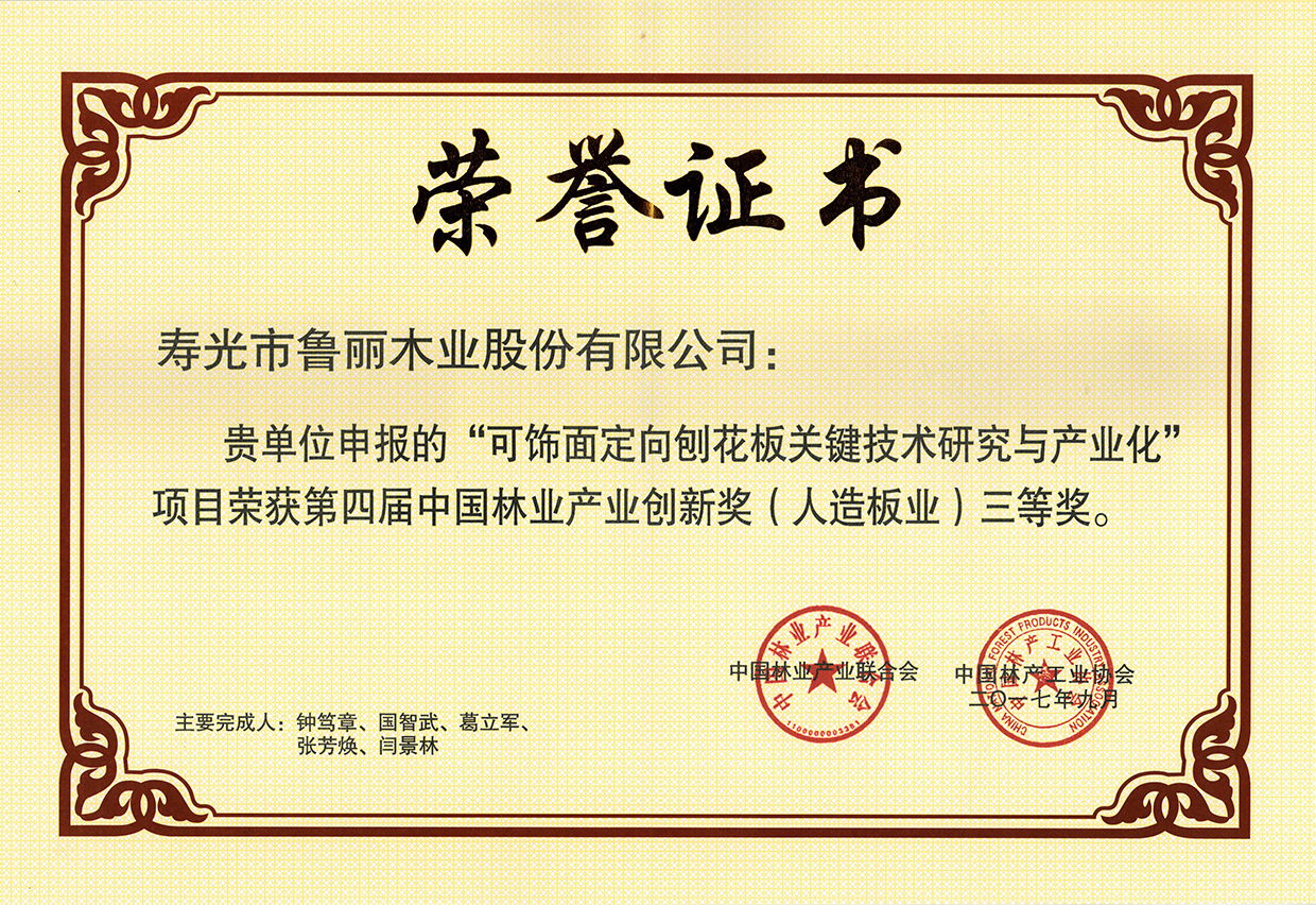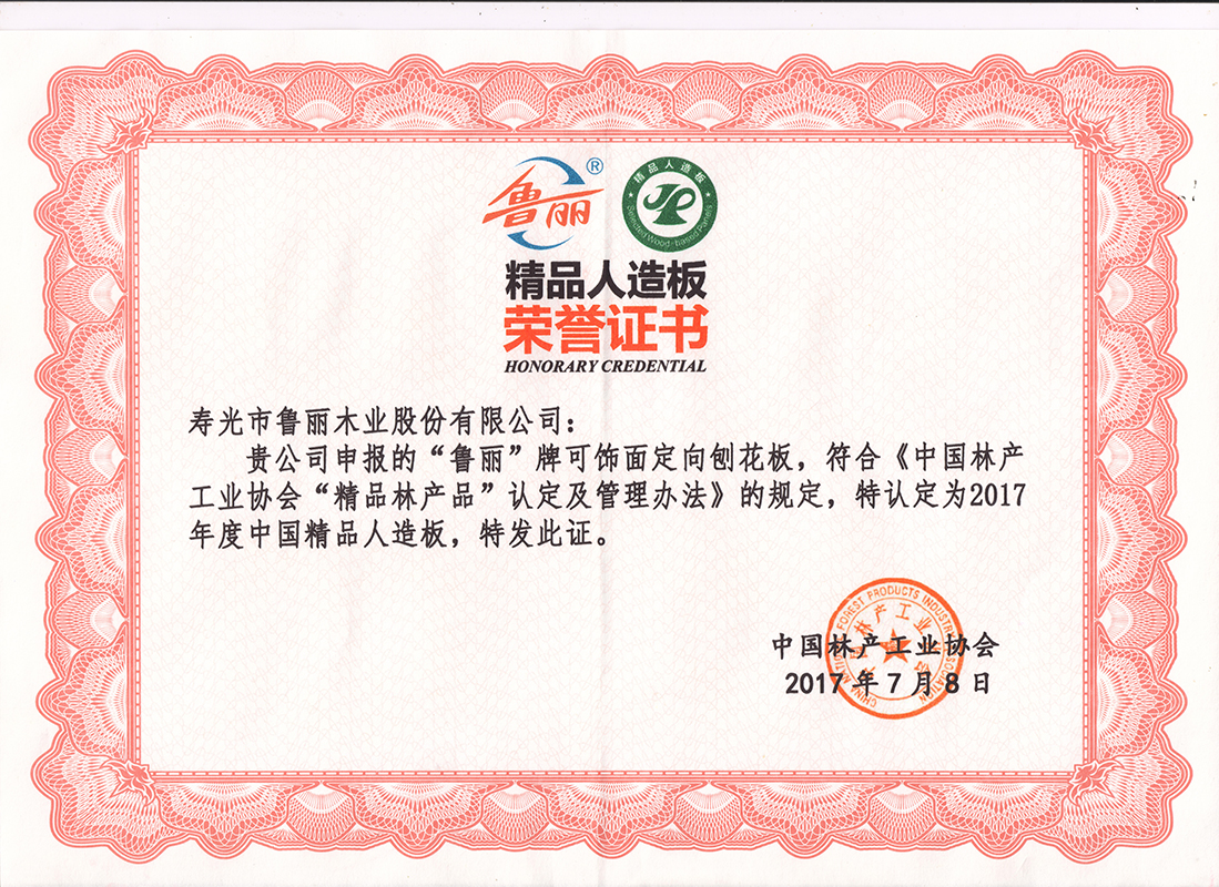 金鲁丽定向刨花板荣获...
